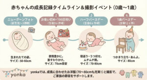 産まれる前なのか、後なのかで選ぶサイズが変わるので、ここもチェックしておきましょう。